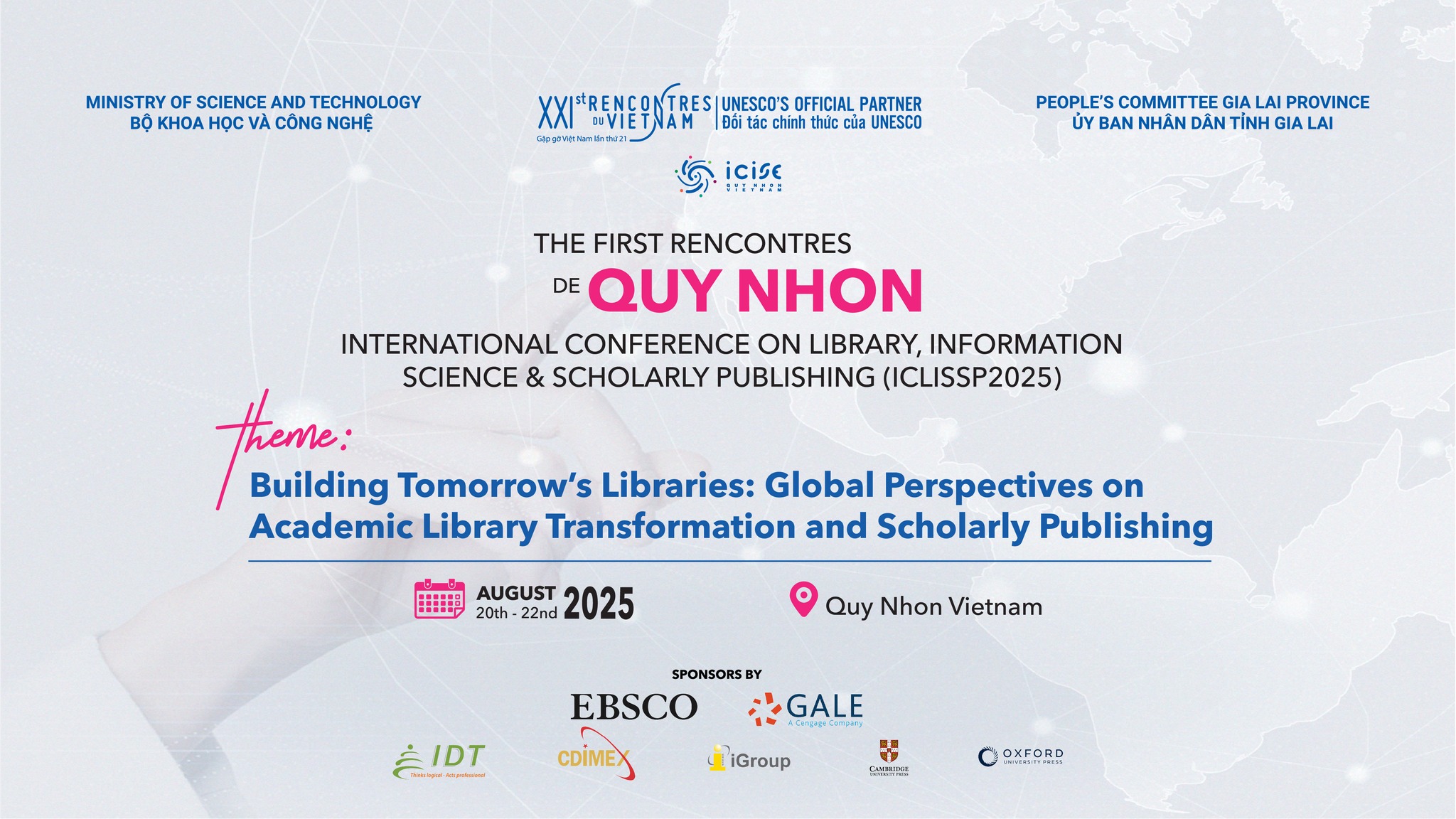 24/04/2026Thư viện Đại học Duy Tân tham dự Hội nghị Quốc tế lần thứ nhất về Khoa học Thông tin Thư viện và Xuất bản (ICLISSP2025) được tổ chức tại ICISE, Quy Nhơn, Bình Định từ ngày 20-22/8/2025. Hội nghị nhằm giới thiệu các kết quả nghiên cứu mới, cập nhật kiến thức chuyên môn và xu hướng phát triển trong các lĩnh vực thông tin thư viện, thư viện số, khoa học mở, xuất bản điện tử và dịch vụ người dùng trong kỷ nguyên số. Đồng thời, hội nghị còn thúc đẩy kết nối học thuật liên ngành và góp phần xây dựng các tiêu chuẩn và chính sách cho lĩnh vực này.